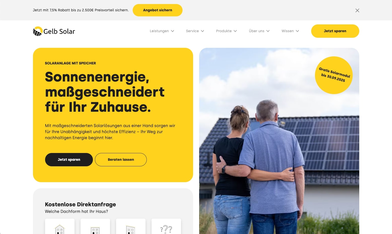 Eine Website, die zwar existiert, aber nicht wirkt. Als wir im Sommer 2024 mit Gelb Solar gestartet sind, war klar: Die alte Website war mehr Pflicht als Strategie. Veraltet in der Technik, visuell überholt und vor allem: unsichtbar. Sichtbarkeit bei Google? Fehlanzeige, außer bei ein paar markenbezogenen Begriffen. Conversion? Nicht messbar. Nutzerführung? Nicht vorhanden.